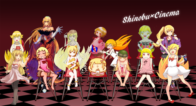 劇場に大集合したイメージで、作品をひとつにさせていただきました。2種ご用意しております。(大きいサイズはこちらで、表示・保存ともにPC推奨です→ https://t.co/g4NVaxG7Dx ) #しのぶシネマ #ぱないの祭
