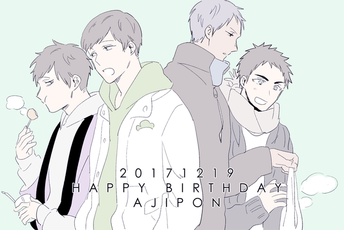 @p0ns54 あじぽん誕生日おめでとー!!いつもお世話になってるお礼にコンビニ帰りな2組を描いてみました!!どうかあじぽんにとって素敵な一年になりますようにっそれと健康でありますようにっ