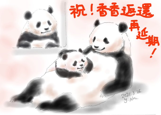 🐼< ヽ(*´∀`)ノ♪ ワーイ❤️ 🐼香香「今年いっぱい いるから弟妹に会えるでし、ベビしゃん、母しゃんのお腹にいるといいなぁ」 #パンダ #阿久津優