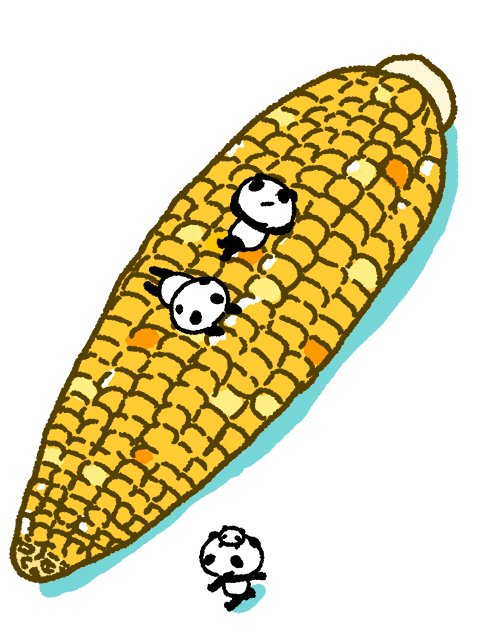 昨日の夕飯はとうもろこしでした・・・。 #イラスト #パンダ