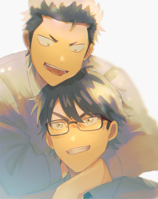 mutさん(@mtu610 )と線画交換して素敵な3Bの2人を塗らせていただきました!!男の子な2人可愛い〜🙏😭 線画→mutさん 塗り→amu