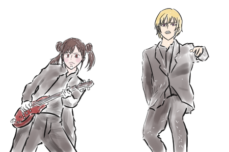 COMPLEXするソノダサイジョウとシンバルキックするサイジョウを描いた、勢いだけで。