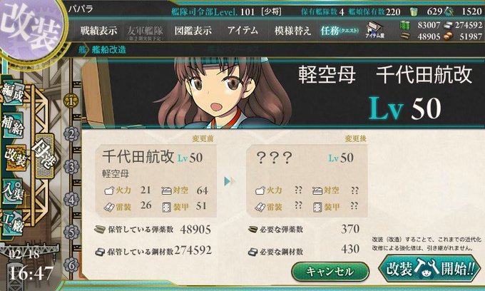 千代田が改二へ! ちとちよ姉妹改二 揃いました!