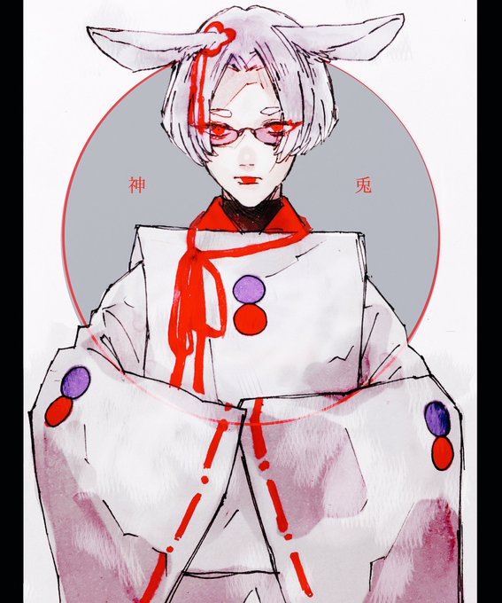 夕摘さん(@nuset_26 )の世界観で私をキャラ化して頂いた、日に弱い兎の神主さん🐰が、素敵でドツボで描いてしもーた…😭❤️❤️✨ステキィ……
