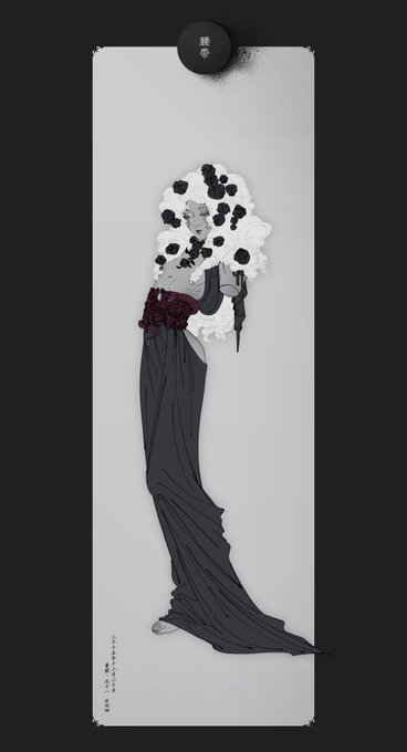 #마음_준_트친을_인어화 화관인어 자라개. 초록빛 지느러미에 적안을 지닌 인어. 머리에 나는 식물의 꽃은 육지에 나는 베고니아와 닮아 있다.