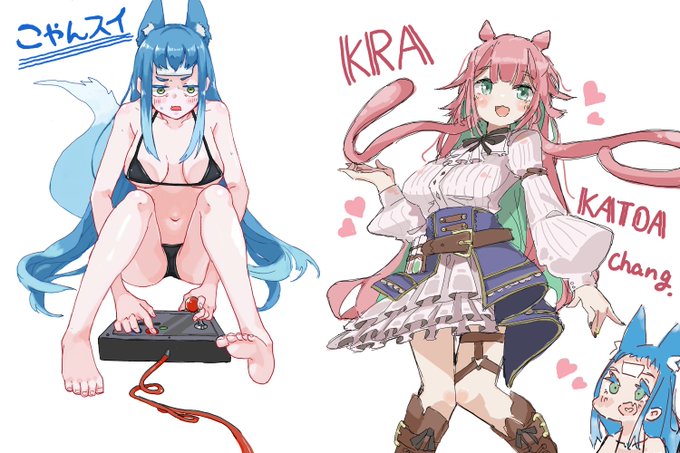 絵チャログ1 【お題】オリキャラ描きあいっこ パーラー鯉:こゃんスイちゃん こゃんスイちゃん:クラ・カトアちゃん