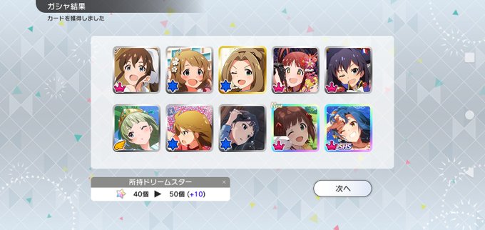 縁起ものなので、ジュエルで10連。一応、新年連続SSレアは途切れてないってことで。 #デレステ