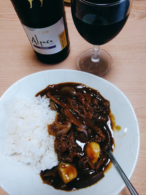 嵐が本格化する前に晩飯。ハヤシライス。