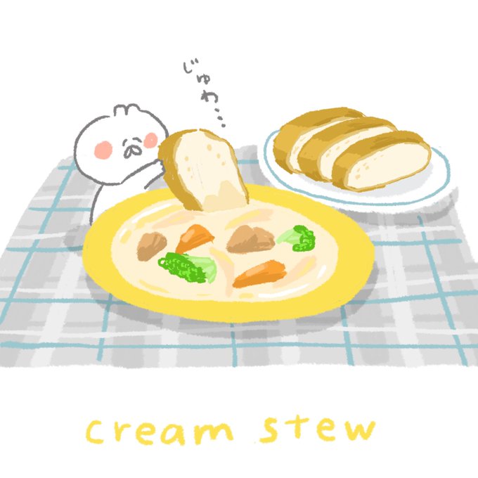 じゅわ...パンと合う...♡ #クリームシチュー #ゆるいイラスト #イラスト好きな人と繋がりたい