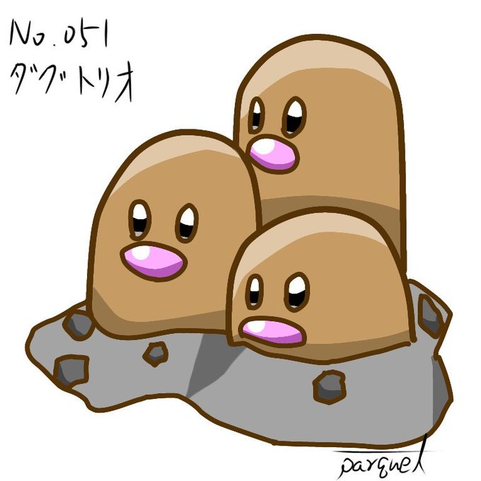 No.050 ディグダ No.051 ダグトリオ #ポケモンイラスト #ポケモン図鑑