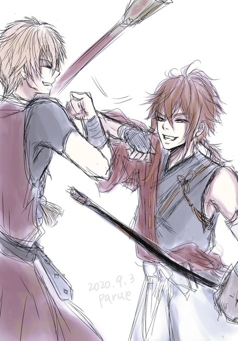 本日の与一さん。と由乃ちゃん。 リオさんのssに触発されちゃいました!アオハル万歳。 イチアちゃん発信の素敵タグ軽率にお借りします٩( ᐛ )و #学パロ源氏伝 #源氏伝FA