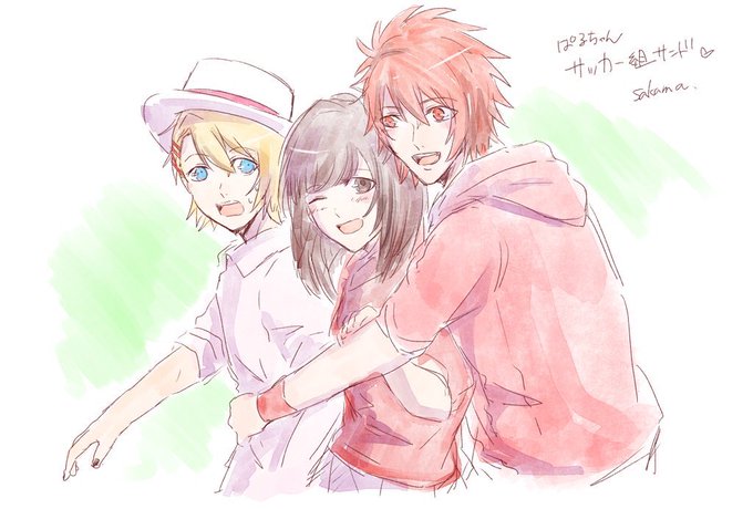さかまっちゃん(@sakama_6 )がわたしがサッカーに挟まれてるイラストを描いてくれた!!!とても!とても!!嬉しいです!!!家宝〜❤️❤️❤️❤️