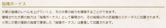 指輪ボーナスを分かりやすくドン。 一枚目、指輪を育てる前(レベル関係カンスト) 二枚目、指輪を育てた後(文豪レベルが50なので数値下がる) 三枚目、育てた指輪を外した後。 四枚目、遊び方に表記されてる指輪ボーナスについて
