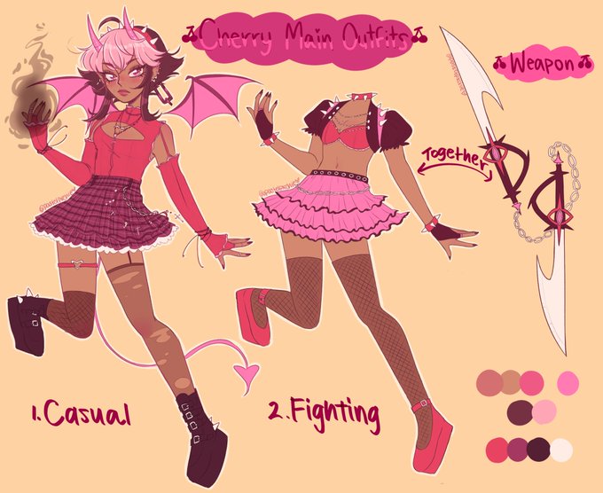 My OC Cherry (she/her) got a redesign!!! I love her new dimple piercings the most 🥺