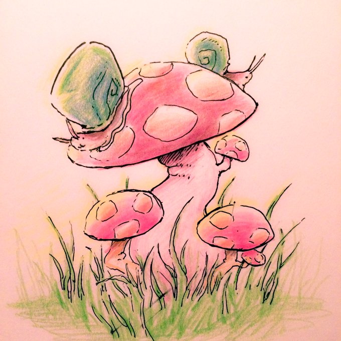 In a time where I can't draw as much @doublemaximus #MushroomMonday gives me a reason too. Here's some snails too 🐌