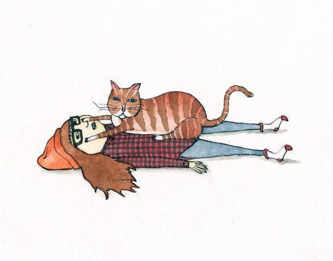 A portrait of the artist and her cat. #illustration #art #watercolor #womenwhodraw #drawing #CatsOfTwitter #cats