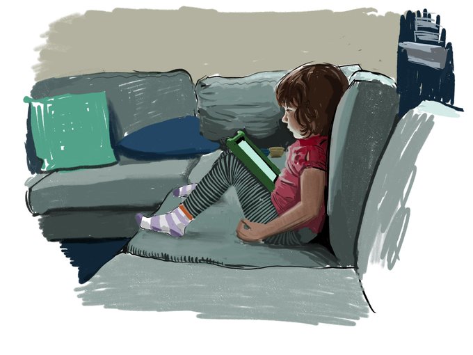 Juni finished her second day of pre-K so got a little tablet time, and I had time for a sketch in @Procreate .