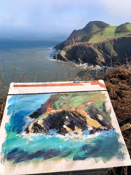 Propped up with my easel at Hillsborough in Ilfracombe, I battled the winds and incoming mist to paint this piece.
