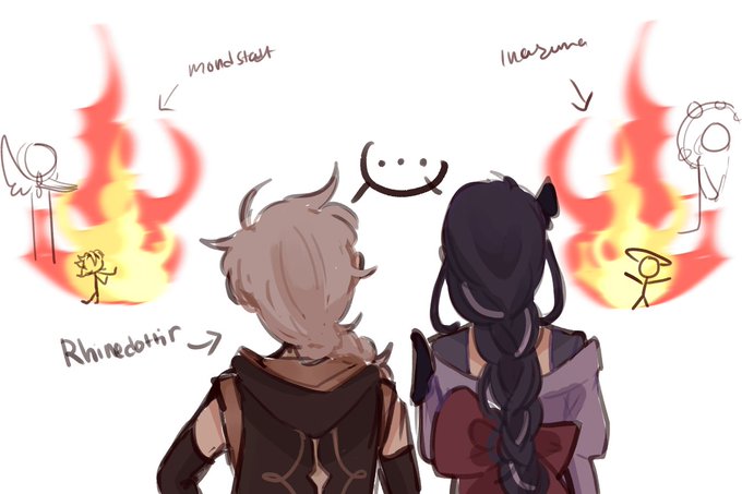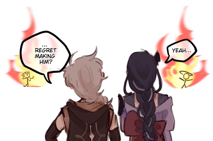 a conversation between two creators #Albedo #Scaramouche #Raiden #Rhinedottir