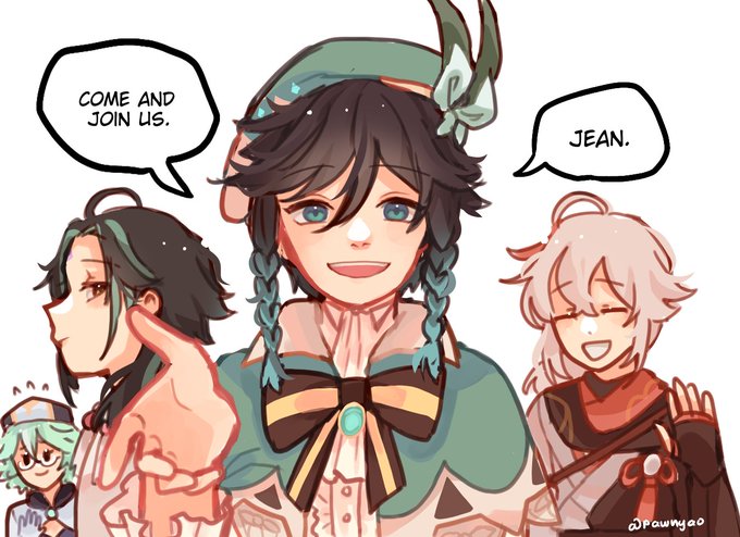 colored version that no one asked for. . #jean #lisa #sucrose #venti #xiao #kazuha #genshinimpact