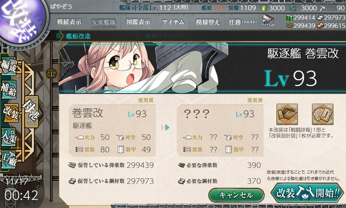 巻雲ちゃん改二完成。かわいいやったー!