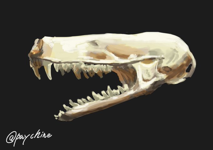 #毎日1点かんたん10分スケッチ +10分くらい ウツボの頭骨 ヘビっぽいけど顎は割れてない。