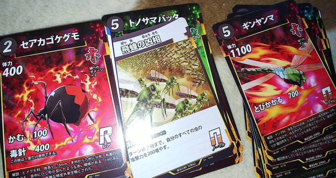 例のカードゲームがトレンドにある一方で蟲神器という凄いカードゲームをご紹介 ・2個のデッキが入って100円(ダイソー) ・丁寧に描き下ろされた虫イラストたちと使いまわされてないエフェクト ・カードが取り出しやすいよう前面が2段折り ・主人公が男の子なのに女の子に間違えられる設定