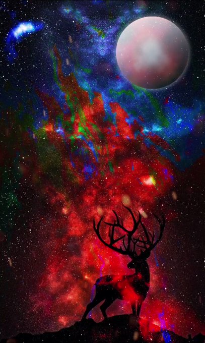 @MarlonNFTs @FloLady_Ochie @BlackentheRed Deer in Flame, a creature created by me, is seen in the enchanted forest that was once so magical. Its habitat is however, threated by the blazing forest fire as it raging towards the magical sky above. 0.25$ETH