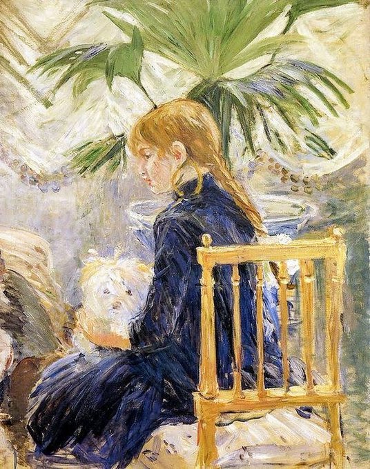 Julie Manet, born #OTD in 1878, was the light of her mother Berthe Morisot's life and her constant model. Here's Julie with her wet-nurse, her doll, her fluffy dog, and her violin. As an adult, Julie devoted herself to keeping the legacy of #impressionism alive.