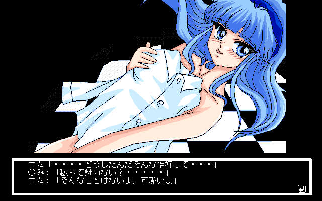 【青色いの★(PC98同人)】日替わりレビューその1149 某魔法騎士の様な青い髪の娘が出るアダルトADV。主人公の行動によって見れるCGが変わる短編である。前作の15パズルは不評なので無くした模様。凄く面倒だったので無理もないかw #クリアしたゲームを毎日1本レビュー #PC98 #PC9801 #PC98同人