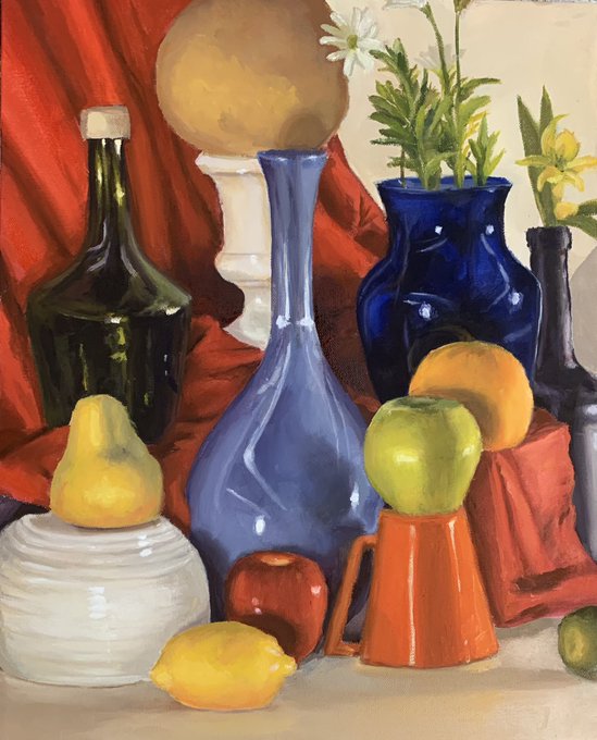 fun fact i also finished this one last week! was only allowed to use triadic color palette, so I was mixing literally everything