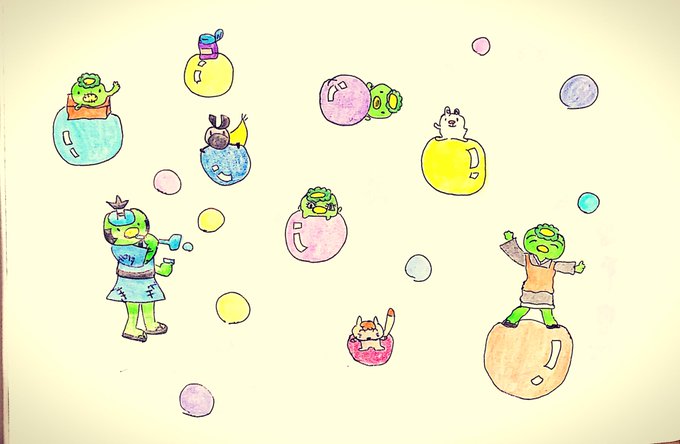 #illust #色鉛筆 みんなでかっぱ巻き
