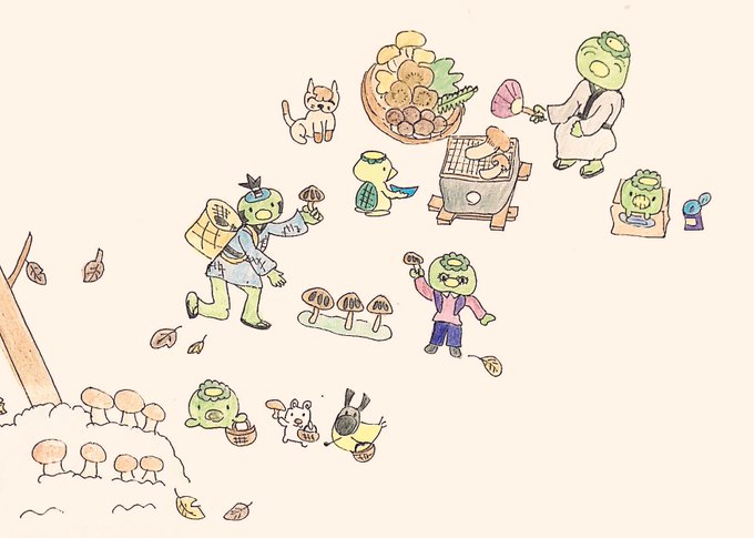 #illust #色鉛筆 まつたけの秋