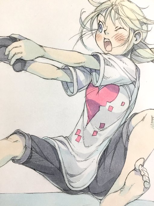 趣味絵の着彩が出来ました。「ゲームに夢中!」です。
