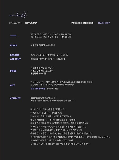 선입금 : 1/20 pm. 7:00 ~ 2/17