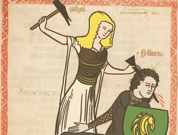[그리마를 죽이는 에오윈], 제4시대 초기 채식본 삽화 https://t.co/NvFuv2o0f8