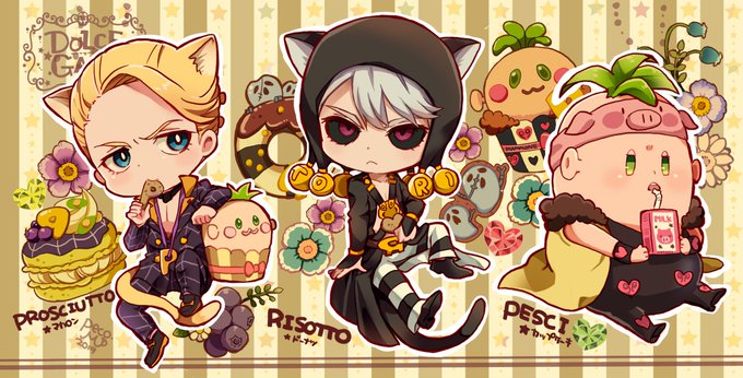 けもみみスイーツギャング🍰暗殺チームverです。リゾット🐱プロシュート🐱ペッシ🐷ギアッチョ🐱メローネ🐰ホルマジオ🐭イルーゾォ🐯アクキーとかいろいろ作る予定です🙌