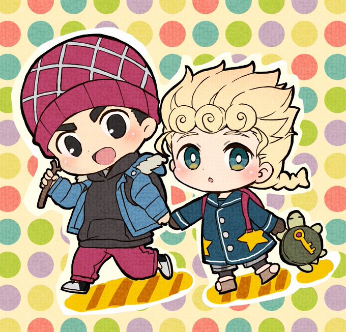 アイコン用。ジョルノが持ってるのはココジャンボ🐢ぬいぐるみ。ミスタが持ってるのはピストルのつもりの木の枝です
