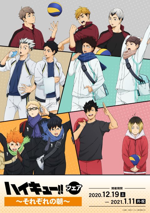 Cartaz da Feira de Haikyuu que ocorrerá toda as manhãs entre os dias 19/12 a 11/01 lá no Japão. Nem todos os jogadores parecem ter acordado cedo pra feira hahahaha