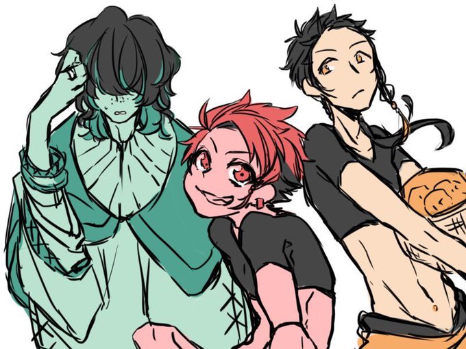これは自創作内推し男女トリオ 溜め込みがちなお調子者♂を強引になぐさめる男前ぼんやり女と、背中で支えるツンデレ世話焼き男
