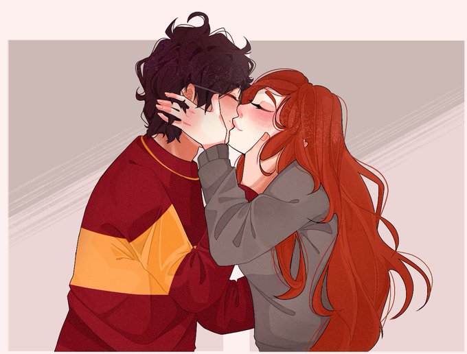 Un dibujo de Harry y Ginny para una hoja de seis fanarts de personajes de Harry Potter.