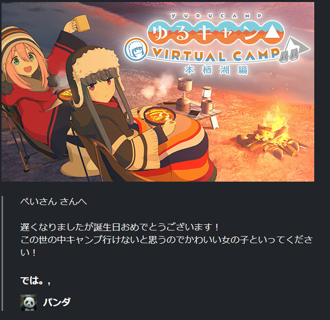 配信中に頂いたプレゼント!パンダさん/のとさん/クレイモアさんありがとうございます!!!