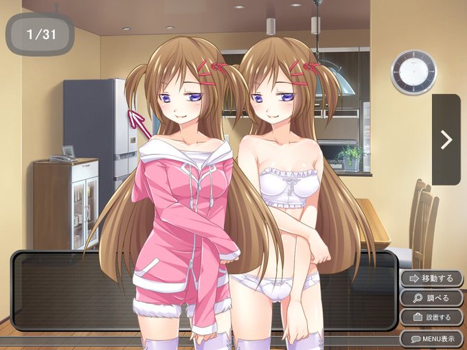 除菌ゲー(タイトル未定)に出てくる兄大好き妹…差分に裸もあるけど、今回は下着まで。ウディタで制作中。昼は基本探索、時々ウィルス娘や妹にいろいろされちゃうゲー…