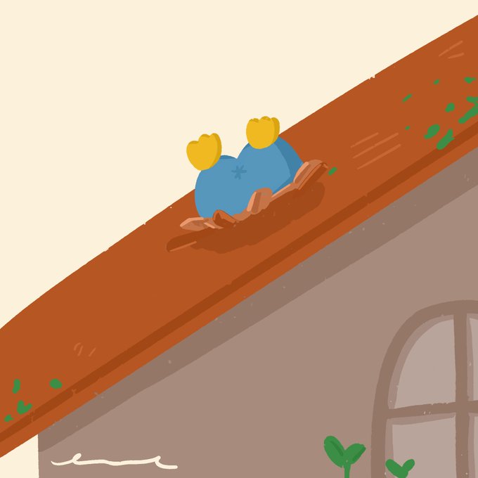 屋根に突き刺さったペンちゃん なんでや🐧 #イラスト #ゆるい絵 #ゆるいイラスト