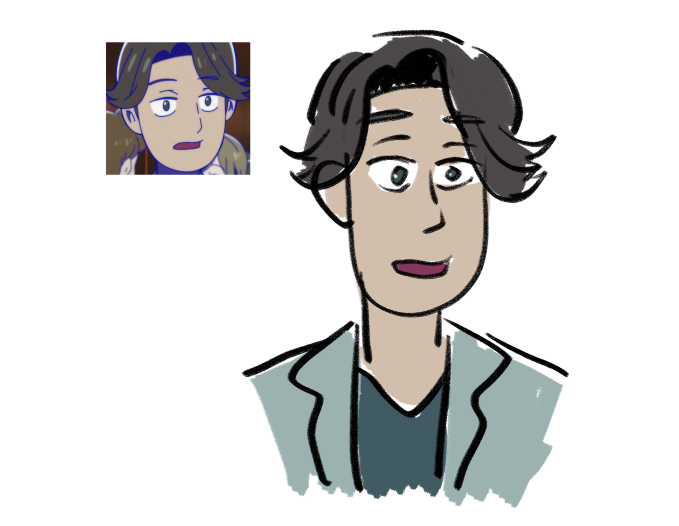 sketch doodle of the day. colourmatsu ((NOT blmatsu ❌)) and new OC thing. also my cat bite a pencil