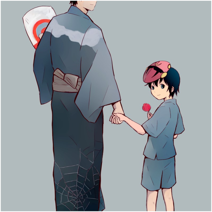 浴衣と甚平。 あの公式絵何度見ても八代の蜘蛛の巣浴衣に震えてる。素晴らしいセレクト…そこに来てあのラブリーなわたがしのパッケージ最高 https://t.co/amLNTFHVlJ