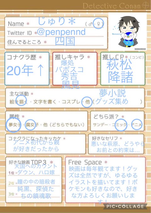 爆処組大好きです…!よろしくお願いします! #コナクラさんと繋がりたい #コナン絵描きさんと繋がりたい #コナクラ自己紹介カード