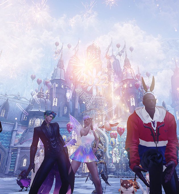 12/30のギルイベのスクショ、めっちゃお正月感あったのでこうしました。(エルバーグレイスの島で撮影会)