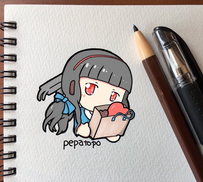 メロちゃんのバレンタインラッピングがないと聞いて大慌てで描きました(๑>ᴗ<๑)っ (早描きだけど、愛は込めました) #駅メモファンアート
