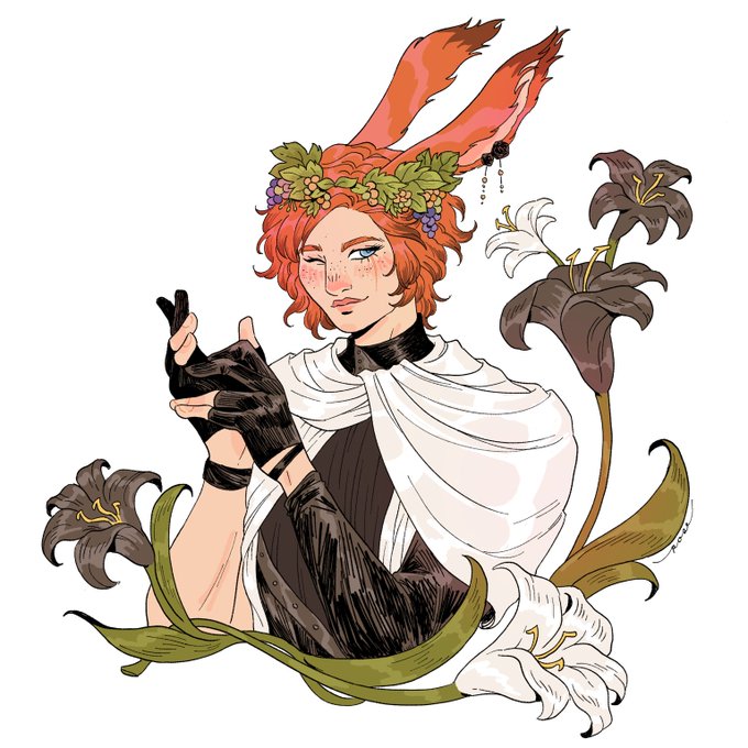 a comm from a little while back of my dear luca from @roseisgaming !! 🧡💐🐇